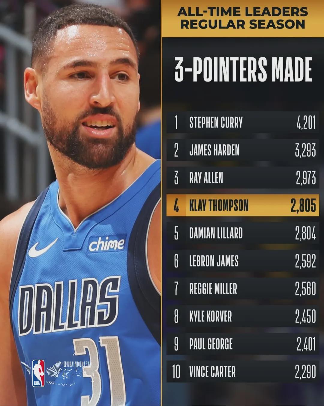 开云体育官网-2809记三分!恭喜克莱汤普森!NBA历史三分榜第四位